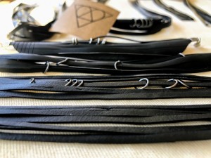 “Acessórios desenvolvidos através da conversão de material comumente descartado, câmaras de bicicleta. Transformação.O corte é feito a mão.”