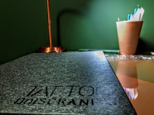 Foi quando na garagem da casa ele pegou uma madeira na rua e começou a lixar lixar até que Adriana buscou uma serrinha para ele cortar, assim nasceu a transformação das estampas da camiseta migrarem para madeira. A partir daí ele começou a fazer peças de madeira e ela começou a pintar as peças com desenhos de plantas. Negativou o banco e começou a comprar máquinas para execução de peças de madeira.