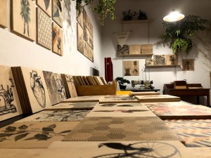 Você vai encontrar…Bolsas e colares de madeira, vasos de cerâmica pintados a mão e serigrafia, outros em impressão digital, quadros em madeira com colagens digitais se espalham pela garagem entre plantas, ela é da turma do dedo verde.