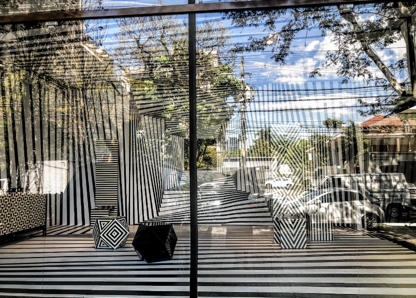 A vitrine chamou atenção com ambientação inusitada em pb explorando o universo gráfico e óptico.